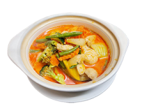 Tintenfisch mit Kokosmilch und Rot-Currysoße, scharf(g)