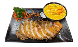 Paniertes Fischfilet mit Kokosmilch, Erdnüssen