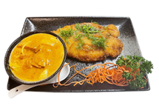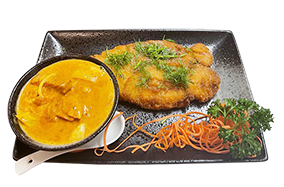 mit frischem Gemüse und Reis als Beilage(4,o)