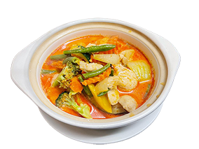 Rindfleisch mit Kokosmilch und Rot-Currysoße, scharf(g)
